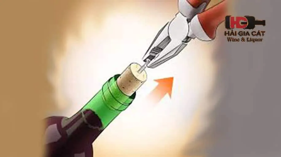 Tiếp tục vặn đến khi phần nút bấc nổi lên miệng chai 1,5cm thì bạn dùng kìm kéo dần ốc vít ra. Theo lực kéo của bạn, con ốc sẽ kéo theo nút bấc ra ngoài. Vậy chai vang thơm ngon đã sẵn sàng cho bạn thưởng thức.