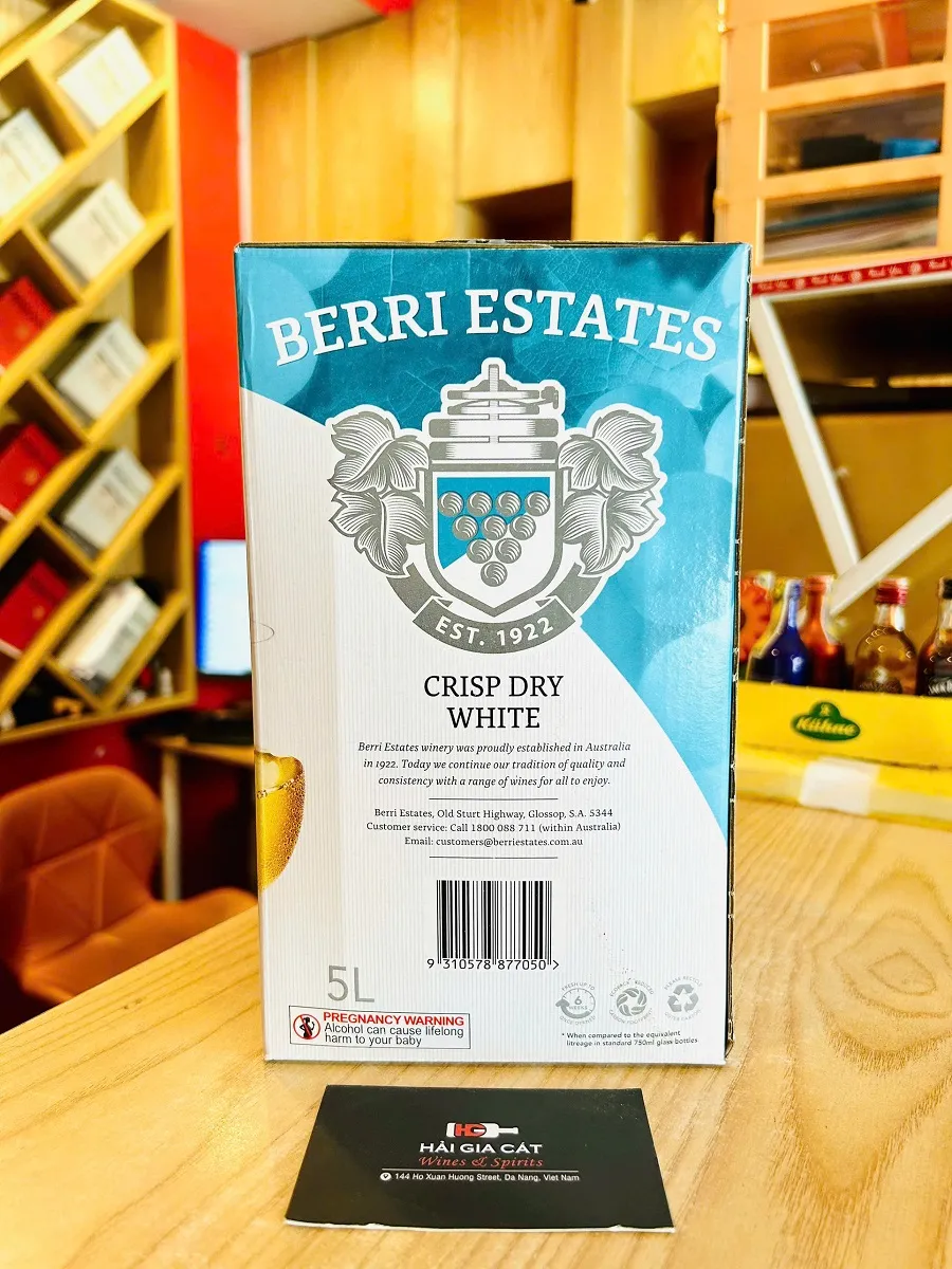 Trong thế giới rượu vang hiện đại, dòng rượu vang bịch (Bag-in-box) đang ngày càng chiếm ưu thế nhờ sự tiện lợi và khả năng bảo quản tuyệt vời. Nổi bật trong số đó là rượu vang Berri Estates Crisp Dry White 5L – một đại diện tiêu biểu đến từ vùng Đông Nam Úc. Với hương vị tươi mát, thanh lịch cùng dung tích lớn tiết kiệm, đây chính là “người bạn đồng hành” lý tưởng cho các buổi dã ngoại, tiệc gia đình hay những sự kiện đông người.